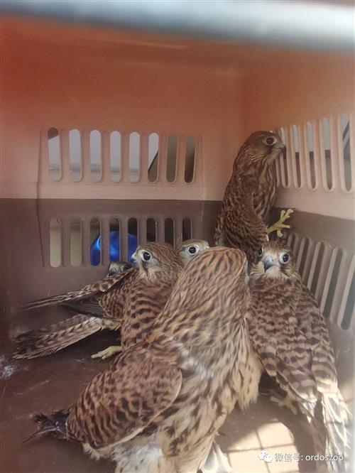 本次共放飛6只紅隼和2只雕鸮,都屬于國(guó)家二級(jí)保護(hù)動(dòng)物。5只紅隼是準(zhǔn)格爾旗第一派出所救護(hù),當(dāng)時(shí)村民自家附近樹下發(fā)現(xiàn)5只剛出窩的幼鳥,派出所接收后立即聯(lián)系我站進(jìn)行了救護(hù)。另外1只紅隼是由東勝區(qū)幸福街派出所救護(hù),當(dāng)時(shí)紅隼虛弱,無(wú)法飛行,趴臥在地上,隨即聯(lián)系我站進(jìn)行了救護(hù)。