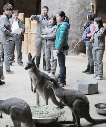 這場(chǎng)戲發(fā)生在袋鼠館內(nèi),園長(zhǎng)正在給大家開現(xiàn)場(chǎng)會(huì)議。旁聽的袋鼠們也非常認(rèn)真。還很有鏡頭感,其實(shí)演員們手中都藏著他們最喜歡的餅干。不知跟這些澳洲來的“演員”們交流是不是要用英文。