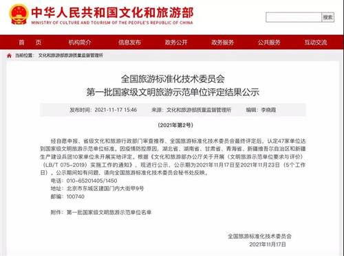 29日,文化和旅游部官網(wǎng)正式公布《全國旅游標準化技術(shù)委員會關(guān)于第一批國家級文明旅游示范單位的公告》,鄂爾多斯野生動物園成功入選。