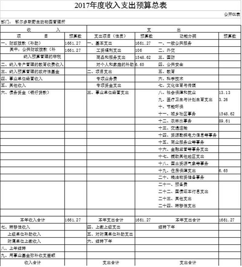 2017年度收入支出預算總表