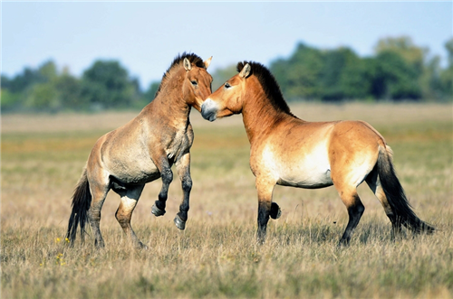 習性:野馬性機警,善奔馳;一般由強壯的雄馬為首領(lǐng)結(jié)成5-20只馬群,營游移生活。多在晨昏沿固定的路線到泉、溪邊飲水。三五只或十余只成群游蕩。群體中的個體之間在進食之后?;ハ嗲謇砥つw。休息和睡眠有站立、腹臥和側(cè)臥等3種姿勢,但警惕性很高,稍有動靜便處于應(yīng)激狀態(tài)。感覺靈敏,警惕性高,奔跑能力強,晝夜活動,但以夜晚為多。